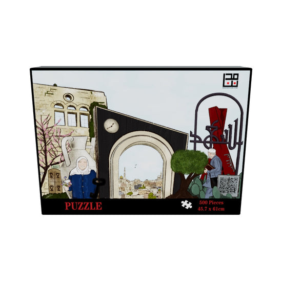 Discover the exclusive Umm al-Fahm city puzzle! This 500-piece puzzle features a unique artistic design that reflects the beauty and spirit of the city of Umm al-Fahm. The illustration included in the puzzle is not just a random scene, it is a piece of art depicting well-known landmarks of the city, drawn by a talented artist native to the area. The original artwork, showcased in a video, received great admiration from the city's residents, known for their warmth, hospitality, and deep love for their city. Through this puzzle, you will experience a unique connection that ties you to a sense of belonging and pride in a place rich in history and tradition. This limited edition is a unique opportunity to own an artistic piece that combines art and a deep sense of connection.